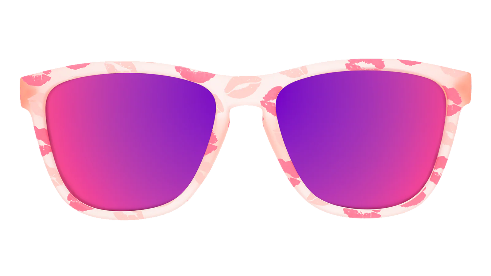 Fluent in Frenching? (French kissing, dum dum. NOT French.) Well, pucker up, polyglots! Juicy smooches abound this Valentine's Day with these limited-edition pink sunnies featuring rose reflective lenses and a flirty all-over-kisses print. MUAH!