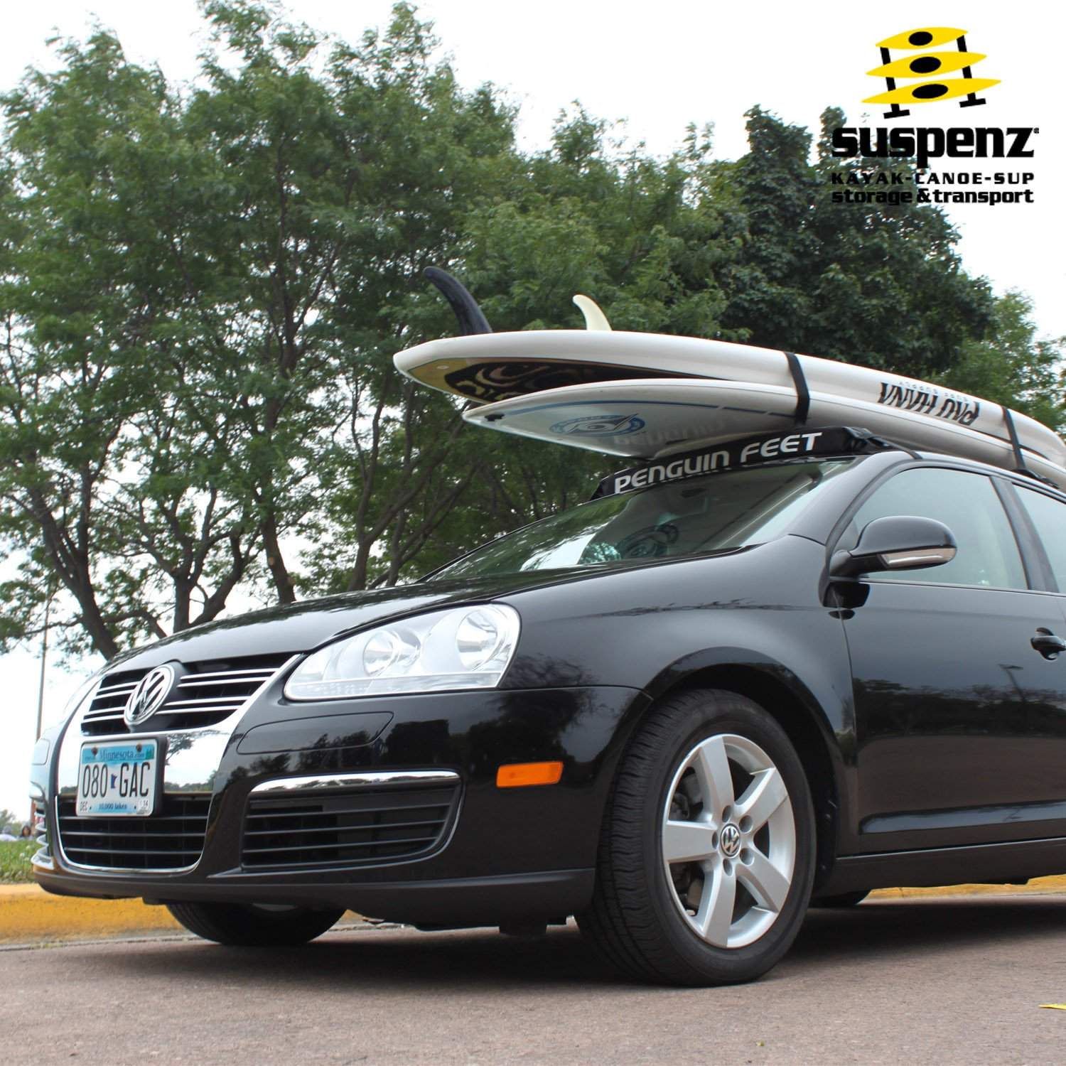Adventure made easy! The Penguin Feet Rack by Suspenz is a premium, removable rack system designed for hauling a wide range of equipment, including stand-up paddleboards (SUPs), surfboards, skis, ladders, and more. This soft car roof rack comes complete, no tools needed and is ready to go in minutes! We highly recommend using Bow & Stern Tie-Downs when transporting Stand-up Paddleboards and Kayaks.