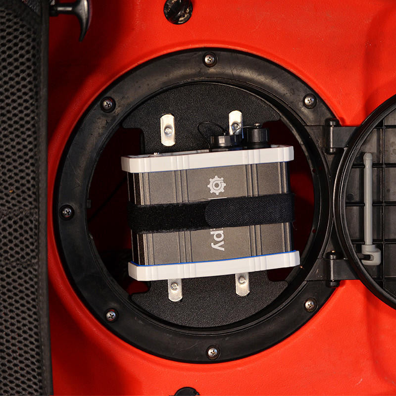 The Bixpy BatteryKaddy™ Battery Mount allows for versatility of mounting our PP-77-AP power bank. Use the BatteryKaddy™ to mount a PP-77-AP in the circle/square hatches of your kayak, on top of your Bixpy PP-768 battery, or on any standard rail system. The velcro strap keeps the PP-77-AP in place even on the roughest of waters.