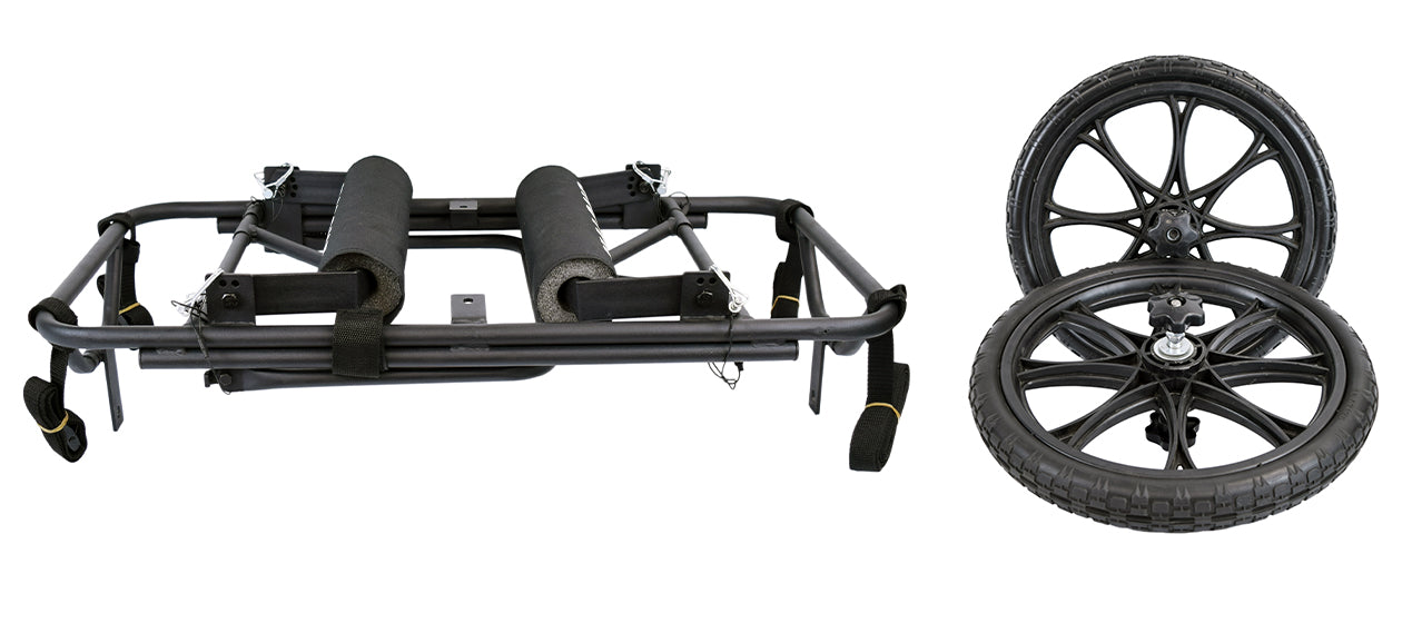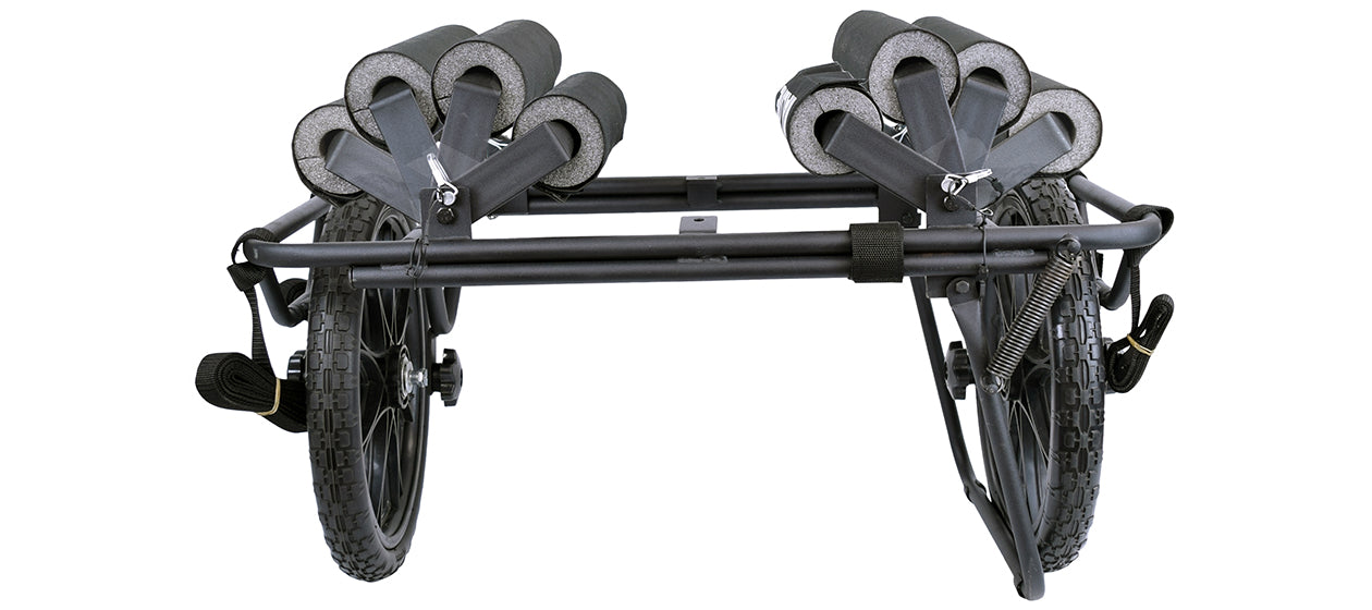 The Forge™ bunk-style canoe and kayak cart is the newest and highest capacity ground transport system offered. Providing ample ground clearance, adjustable bunks and a steel frame the Forge™ is engineered to deliver years of reliable performance. The bunk-style frame fits most boats such as canoes, kayaks, lasers, Jon boats and paddleboards, ensuring safe and secure transportation for up to 300 pounds (136 kilograms).